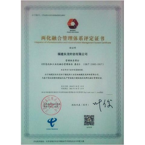 • 工信部?jī)苫诤瞎芾眢w系評(píng)定證書(shū)