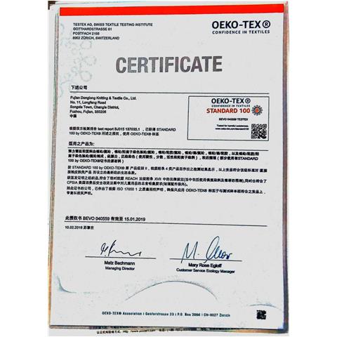 • 瑞士OEKO-TEX STANDARD 100生態(tài)紡織品認(rèn)證證書(shū)