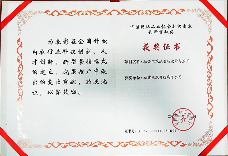 中國紡織工業(yè)協(xié)會內(nèi)衣創(chuàng)新貢獻(xiàn)獎/2018-09-04