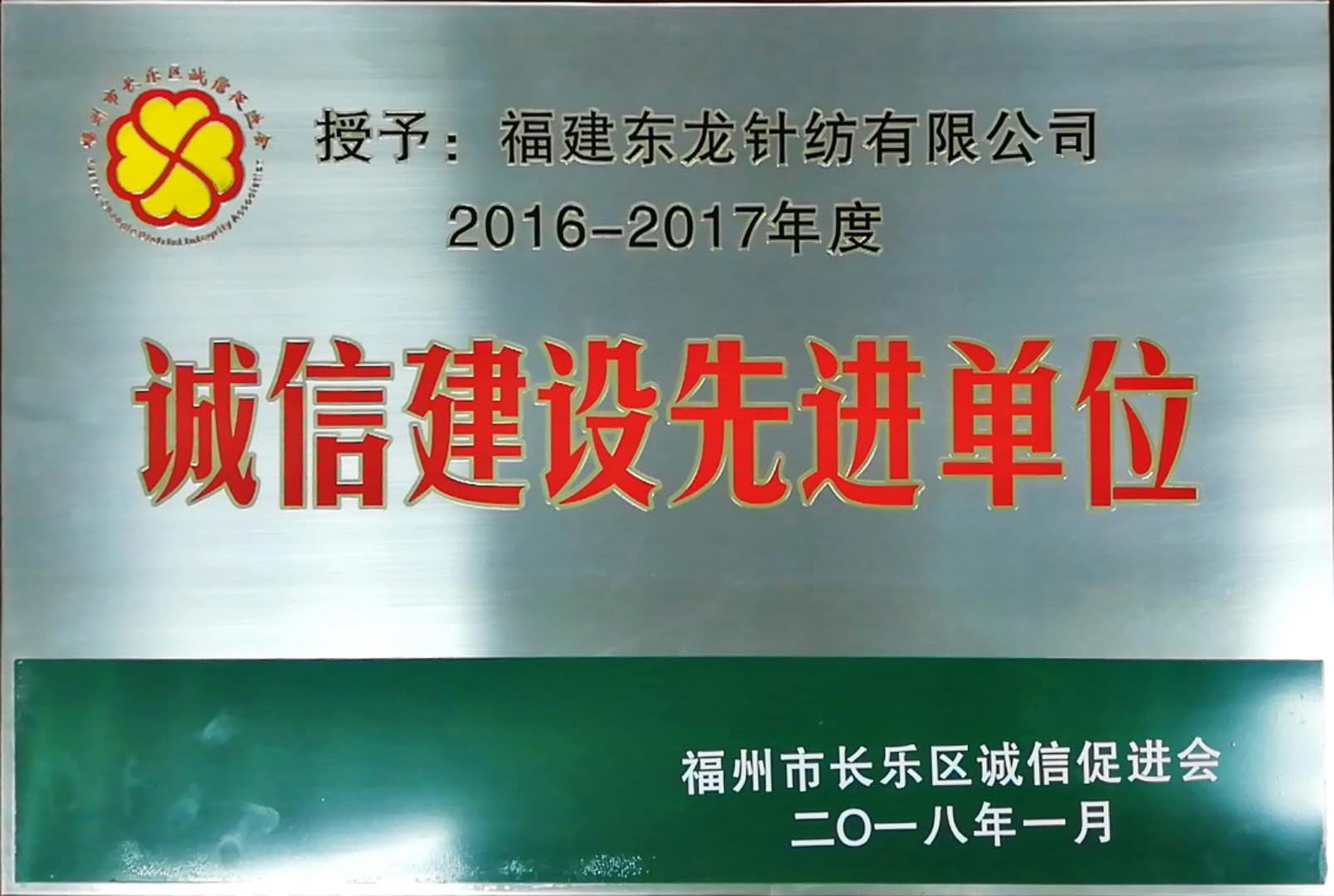 長樂區(qū)誠信建設先進單位/2018-09-04