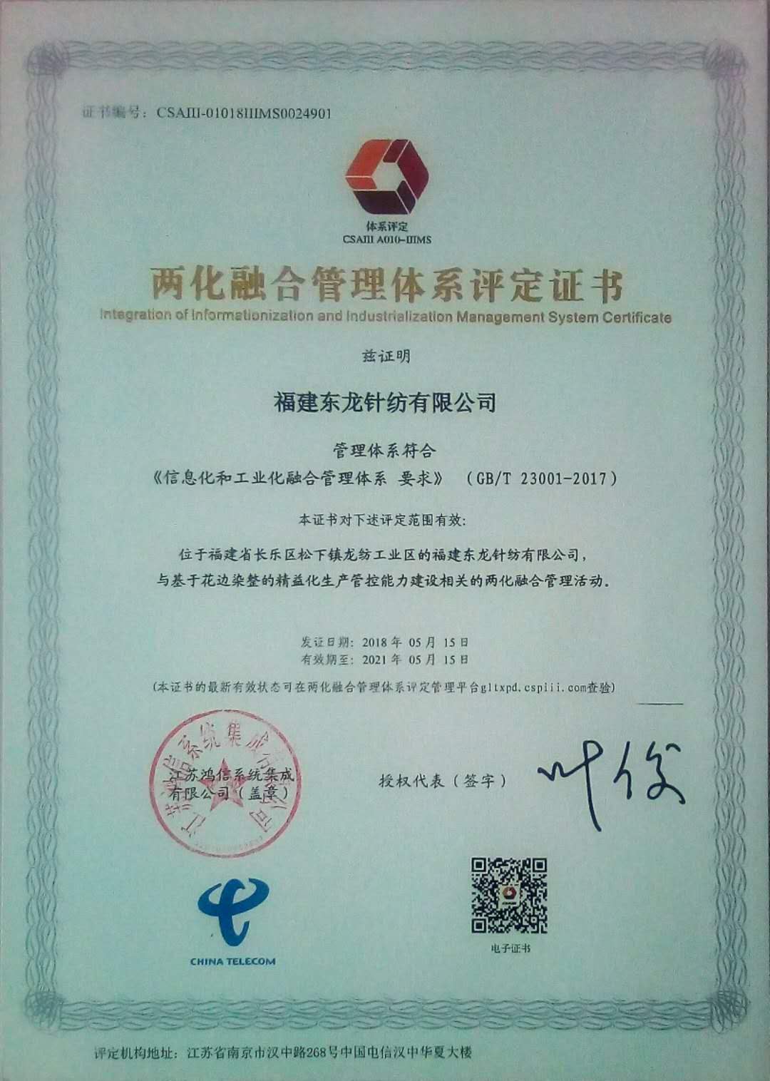工信部?jī)苫诤瞎芾眢w系評(píng)定證書/2018-09-04